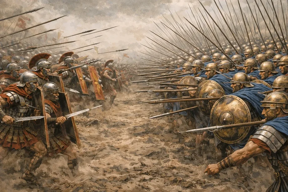 로마 군단이 어떻게 마케도니아 팔랑크스를 무너뜨렸는지에 대한 전술적 분석.